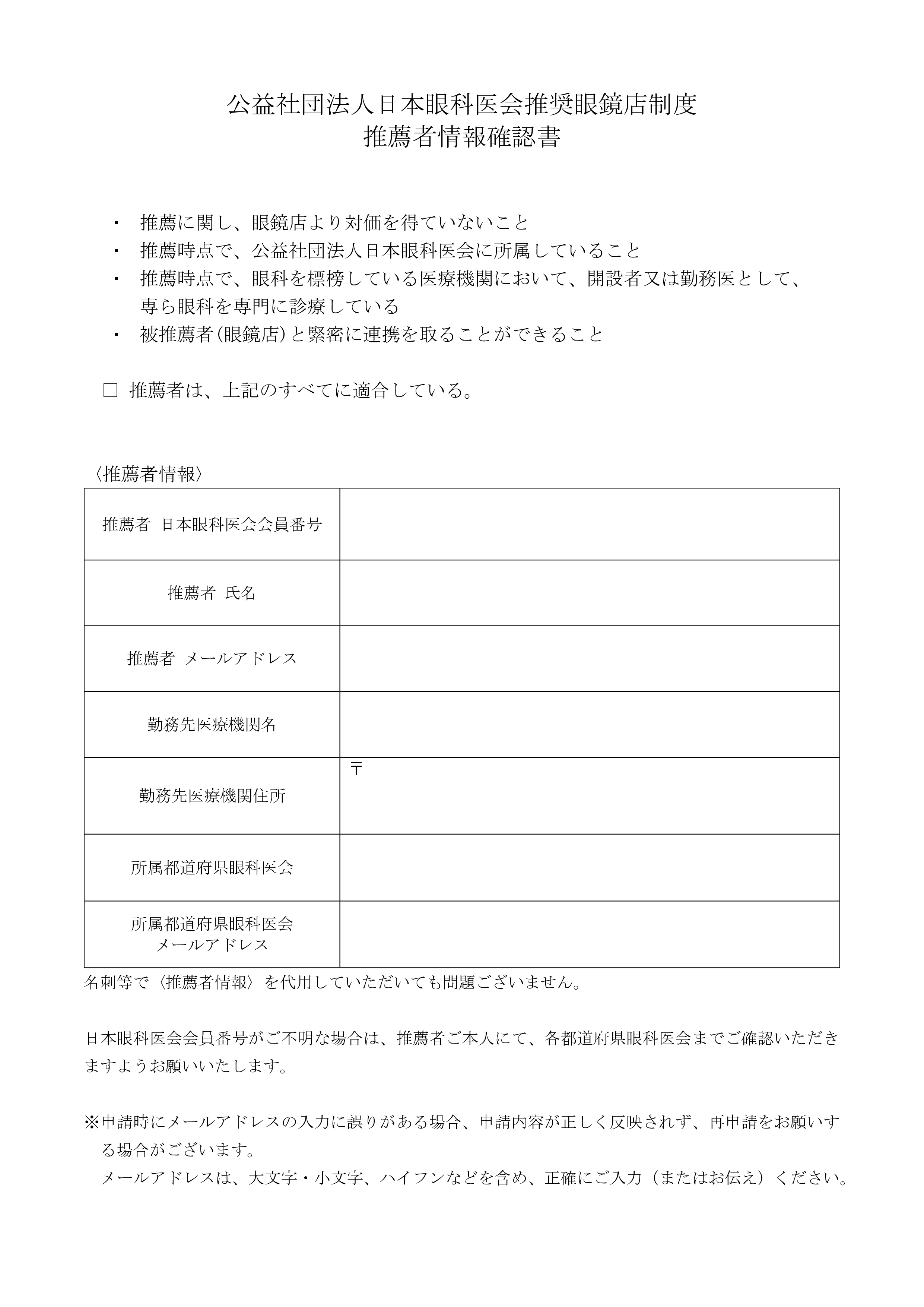 公益社団法人日本眼科医会推奨眼鏡店制度 申請フォーム(申請内容一覧)