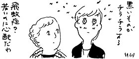 大きな網膜の亀裂を合併した場合などには、網膜の亀裂が生じた際の出血が硝子体(眼球の中にある卵の白身のような液体)に混ざって、視線を動かすと視野の中にすすやゴミのような邪魔な物が見える、飛蚊症という症状がでることがあります。